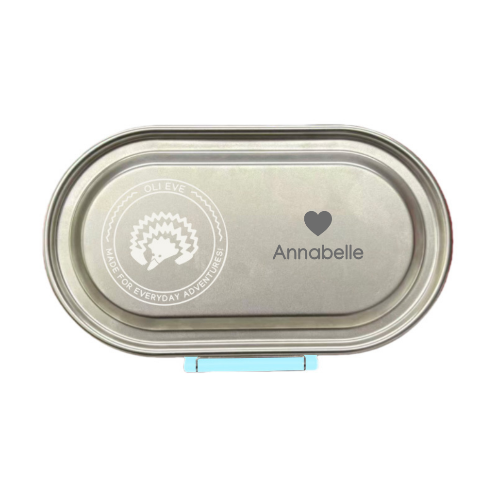 We laser personalise each Oli Eve Bento Go snack box in house on request. Our engraving is permanent (no stickers to peel off) and adds that special touch for school, daycare or gifting.