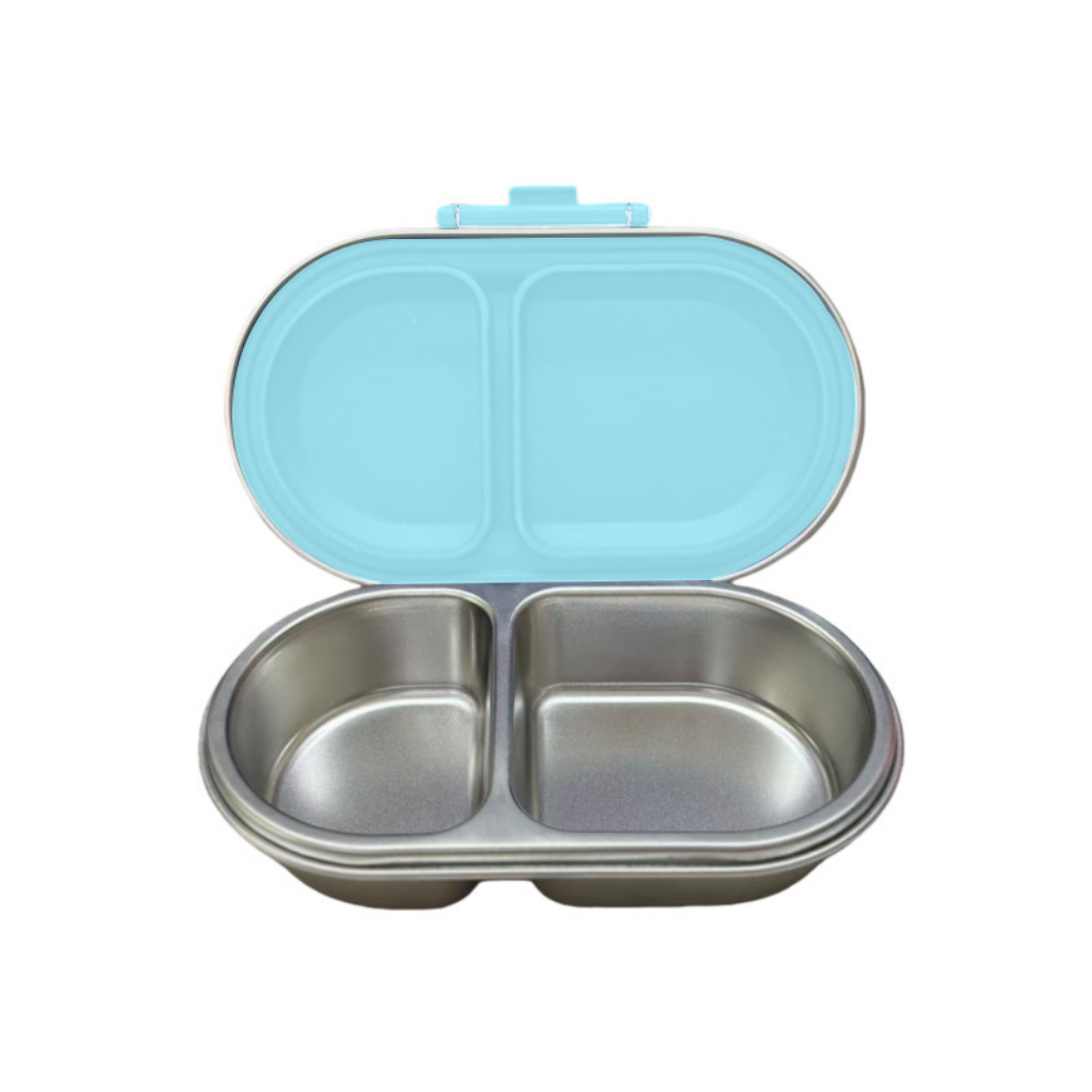 The Oli Eve Bento Go is a premium 2-compartment stainless steel snack box designed for Crunch & Sip, brain breaks, playground fuel stops and snacks on the go. Its the perfect companion to the Oli Eve Bento 4 or Bento 5 to round off your stainless steel school lunchware.
