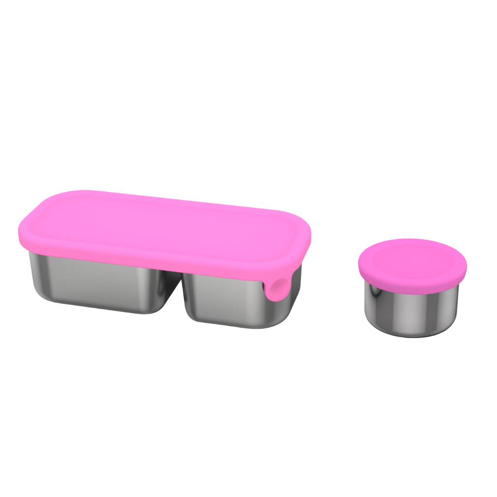 Oli Eve | Stainless Steel Snack Container | 2 Compartment | Pink Galah