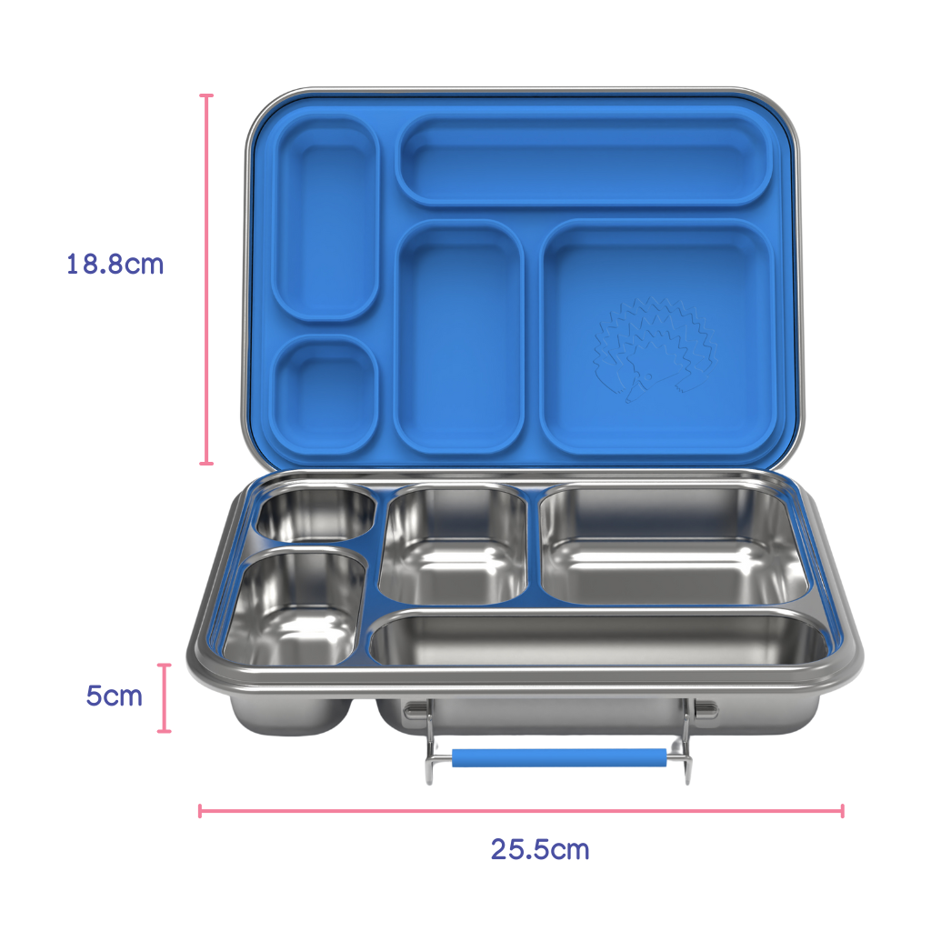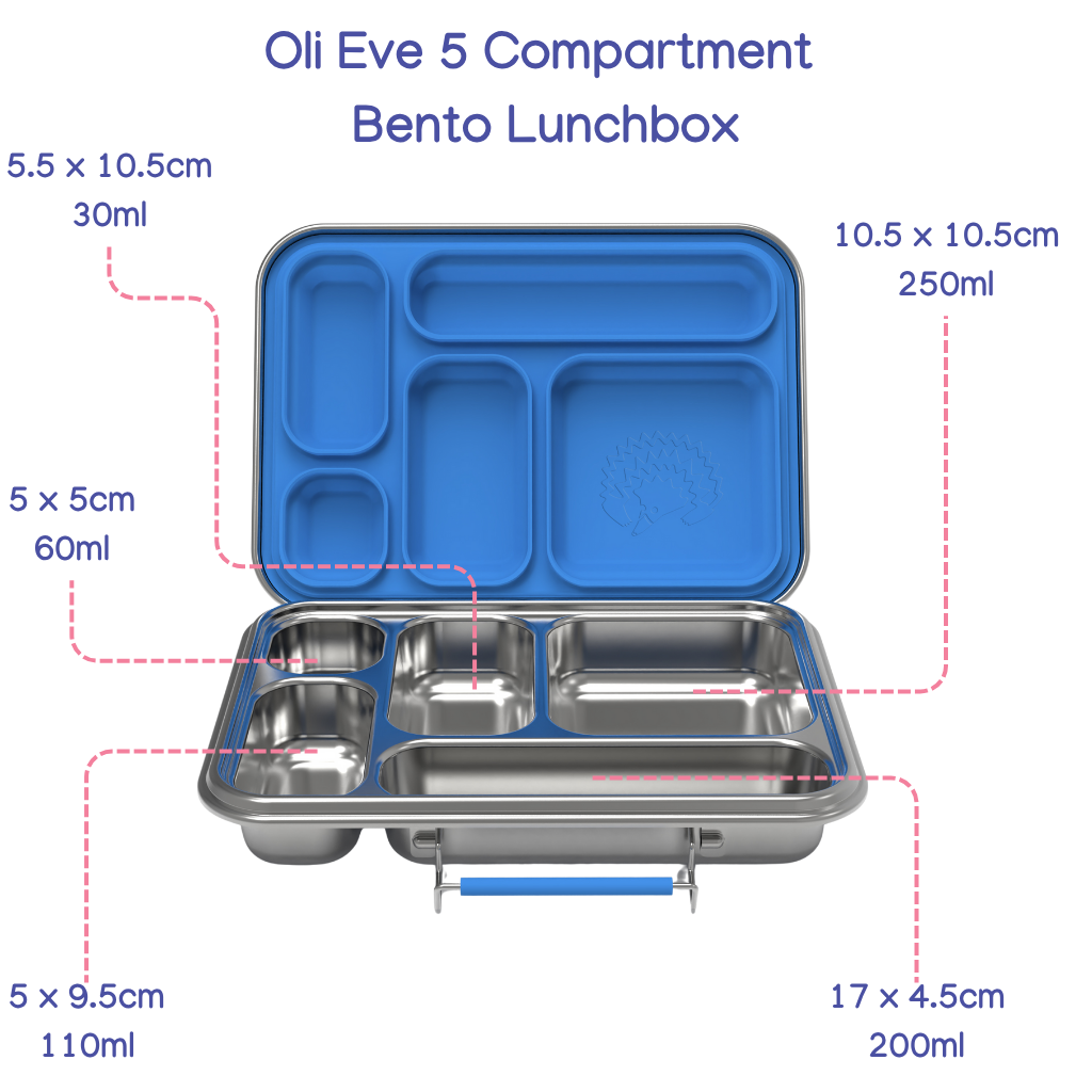 Oli Eve | Stainless Steel Bento Lunchbox | 5 Compartment | Big Blue
