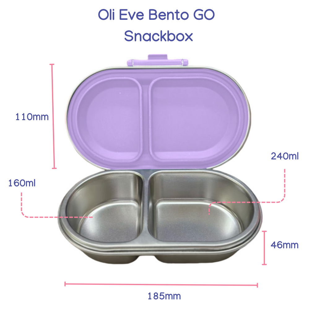 Oli Eve | Stainless Steel School Bento 5 Lunchbox and Bento GO Snack Box Combo | Jacaranda Mist
